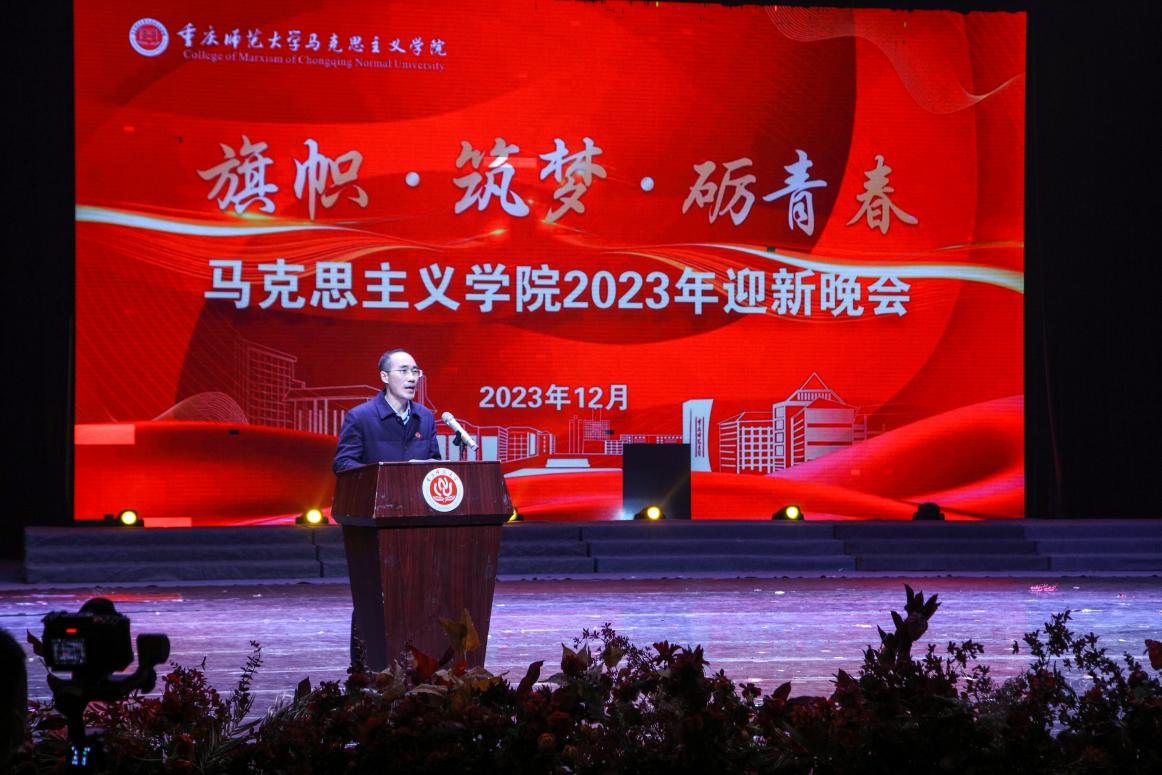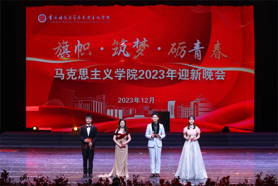 晚会伊始,我院党委书记李晓燕致辞。李书记以学院始终坚持党建统领,不断积聚力量、共促发展为背景,肯定了学院在本年度取得的可喜成绩和丰硕成果。在此基础上,李书记对未来学院发展提出三点希望:一是旗帜引领、凝心铸魂,彰显马院“高度”,始终保持马院姓马的鲜明底色;二是筑梦远航、坚守初心,涵育师者“大度”,为教育事业薪火相传积蓄力量;三是砥砺青春、矢志奋斗,积淀人生“厚度”,践行强国有我的誓言。