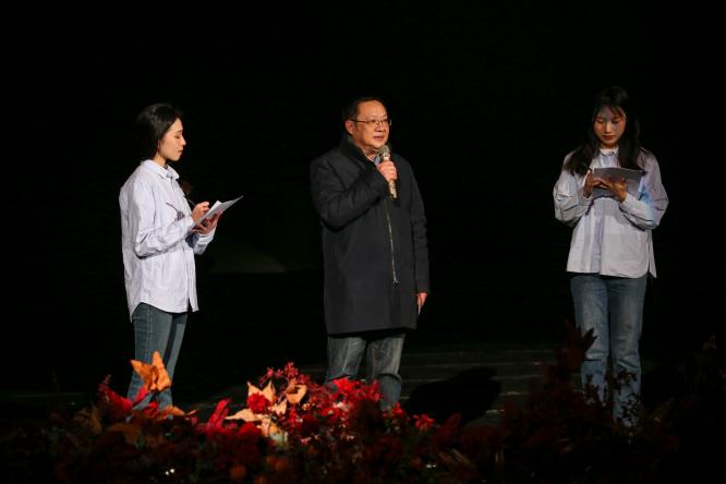 晚会中,孟校长对全体演职人员表示感谢并祝愿全体我院学子新年快乐、学业进步,在新的一年里茁壮成长。