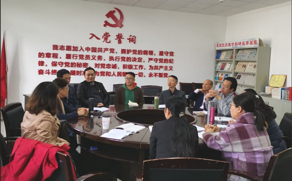 两位同志领学研讨“习近平关于‘不忘初心、牢记使命’论述摘编”;通过介绍优秀共产党员王桂林同志事迹、王桂林同志分享教学心得、同志们学习谈体会的方式,将学习活动与教师师德涵养、教育教学方法探讨等结合起来,提升党员教师树立“一个党员岗位就是一名旗帜的意识”,向先进学习和靠拢;并积极研讨 “概论”在线课程的建设。
