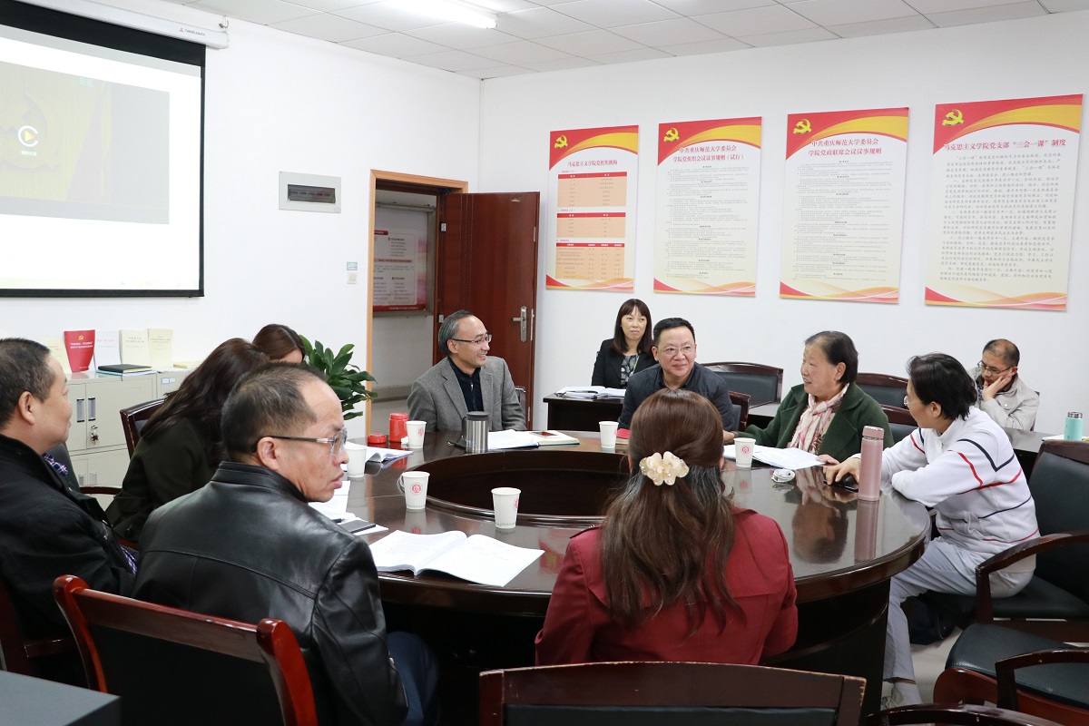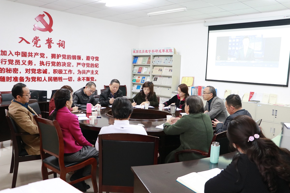 首先,参会全体人员对《中国共产党第十九届中央委员会第四次全体会议公报》进行了视频学习。随后,刘军书记介绍了习近平总书记关于十九届四中全会《中共中央关于坚持和完善中国特色社会主义制度、推进国家治理体系和治理能力现代化若干重大问题的决定》的起草情况说明,帮助大家加深学习理解。学习结束后,刘军书记带头与大家分享了他的学习心得。他谈到:党的十九届四中全会意义深远,《决定》内容全面系统,是党中央站到新的历史与时代高度对国家治理未来发展绘制的清晰蓝图;党中央对《决定》的起草、准备、修改及完成时间跨度大,推进工作的务实有效、起草流程的规范严谨对我们工作起到良好的学习和示范作用;将十九届四中全会精神结合学院改革发展、内部治理和高校思政课老师的具体工作,以实际行动担当“为党育人,为国育才”和“立德树人”的重要使命。