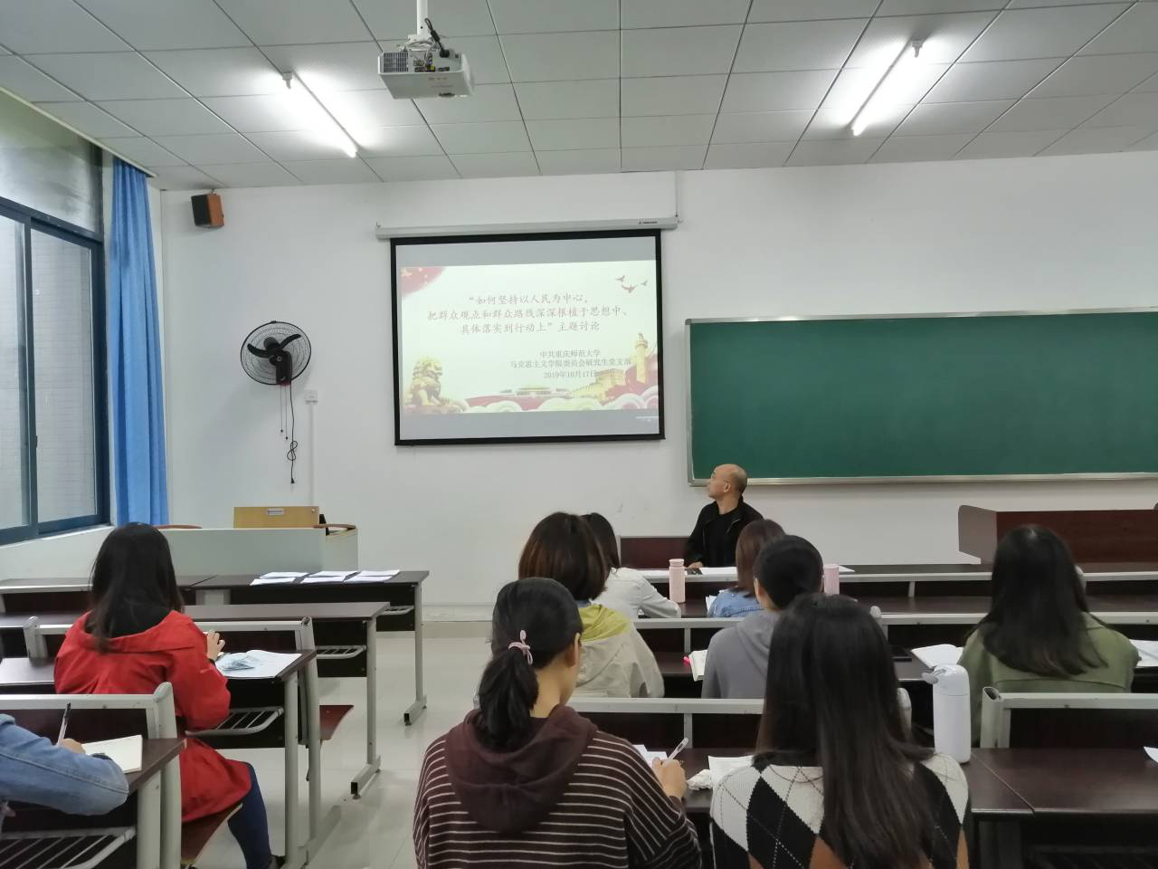 2019年10月17日下午,2138cn太阳集团古天乐研究生党支部在汇贤楼108教室召开了“不忘初心、牢记使命”主题教育。本次讨论的主题为“如何坚持以人民为中心,把群众观点和群众路线深深根植于思想中,具体落实到行动上”,活动由支部书记李剑主持。