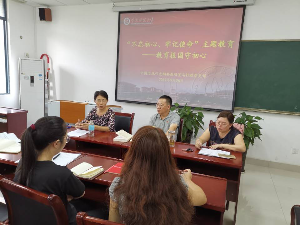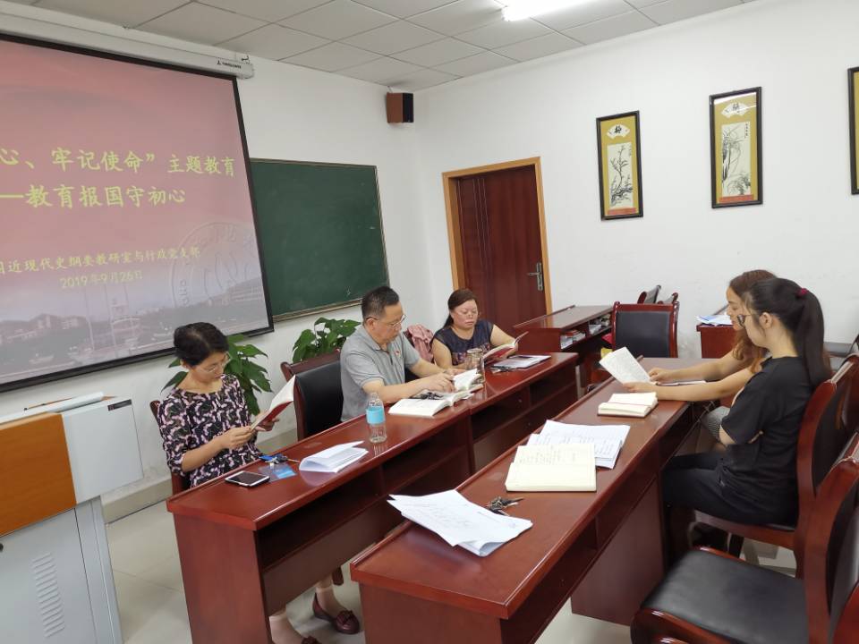 根据学校党委和校主题教育领导小组办公室文件精神,以及学院党委安排,9月26日下午,纲要与行政党支部在汇贤楼2138cn太阳集团古天乐309会议室召开了“不忘初心、牢记使命”主题教育之“教育报国守初心”主题党日活动。支部党员参加会议,会议由支委高德华同志主持。
