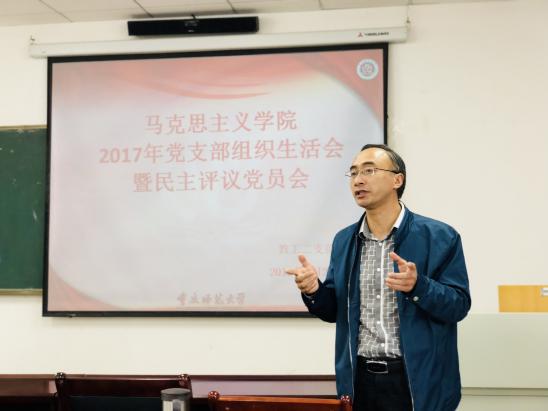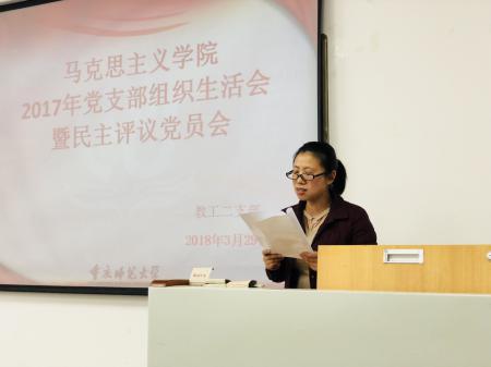 按照学校党委组织部《关于认真召开2017年度二级党组织党员领导干部民主生活会、党支部组织生活会及开展民主评议党员的通知》(重师委组〔2018〕7号)文件精神及工作要求,我院教工二支部在前期专门召开了支部委员会,精心制定了党支部组织生活会及民主评议党员工作的议程和方案,并于3月29日召开支部党员大会,进行了党支部组织生活会及民主评议工作。