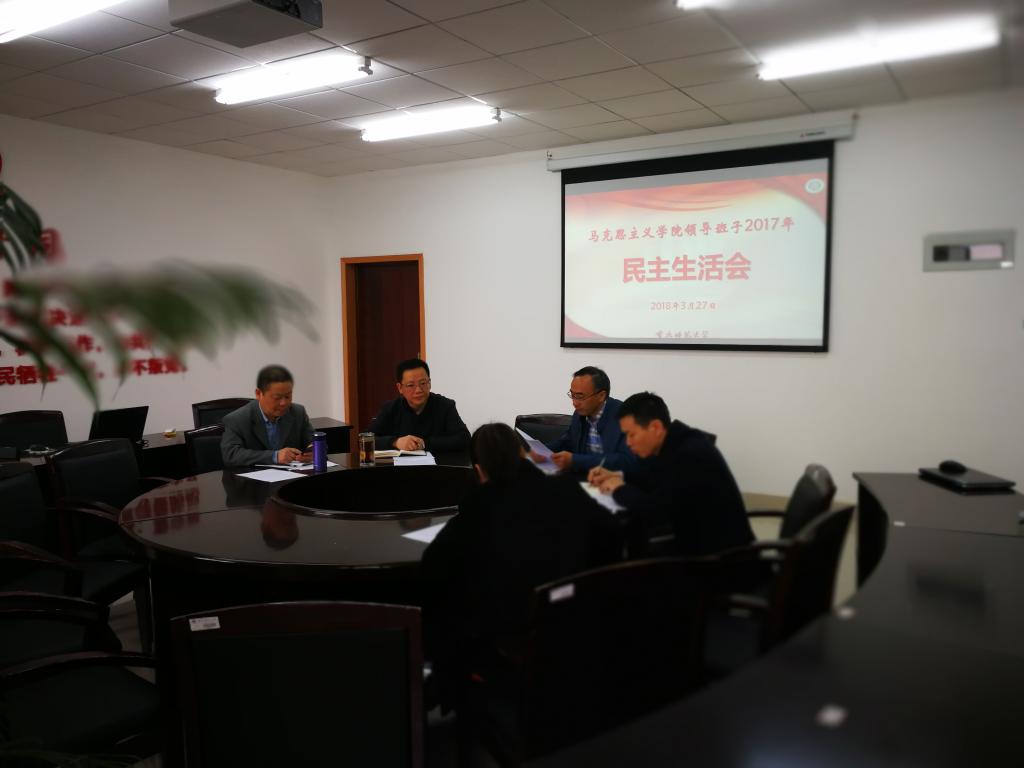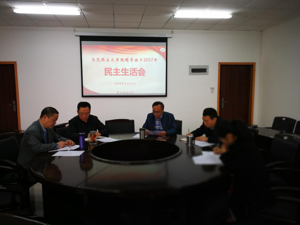按照学校党委组织部《关于认真召开2017年度二级党组织党员领导干部民主生活会、党支部组织生活会及开展民主评议党员的通知》(重师委组〔2018〕7号)文件精神及工作要求,2138cn太阳集团古天乐党委于2018年3月27日在301会议室召开了2017年度学院领导干部民主生活会,学院党委书记刘军、院长陈洪、副院长况明安、副书记姜土生参加。民主生活会由学院党委书记刘军主持。