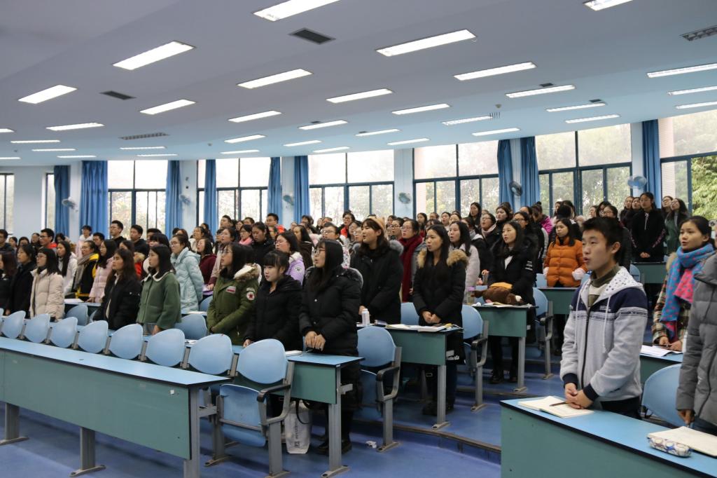 为进一步深入学习贯彻落实党的十九大精神,引领学生切实学懂、弄通、做实党的十九大精神,坚定中国特色社会主义的信念,2017年12月8日14时30分,2138cn太阳集团古天乐特在弘德楼5205教室举办“十九大”报告宣讲会。本次宣讲会由2138cn太阳集团古天乐郑瑜老师担任主讲人,2017级全体学生积极参与。