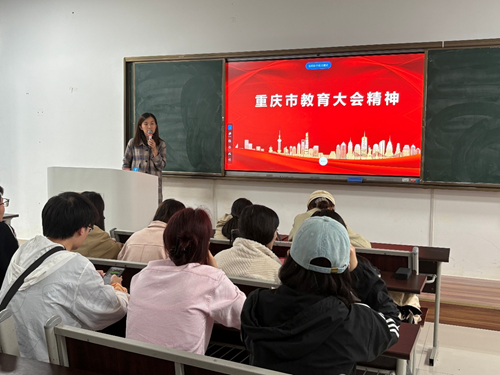 随后,三位党员同志依次进行全国教育大会精神、重庆市教育大会精神的学习分享。杜梦玲同志领学全国教育大会精神中的立德树人根本任务和教育强国战略目标,并清晰阐述了教育改革与发展的方向;曹静同志从实施立德树人工程、加强教师队伍建设、鼓励社会力量参与以及应对未来挑战这四个方面,与同志们进行充分学习与探讨;刘倩倩同志领学重庆市教育大会精神。最后,谭景文同志对本次主题党日活动进行总结,要求全体党员认真学习领会、深入贯彻落实相关会议精神,深刻领悟 “两个确立” 的决定性意义,不断增强 “四个意识”、坚定 “四个自信”,切实做到 “两个维护” 。