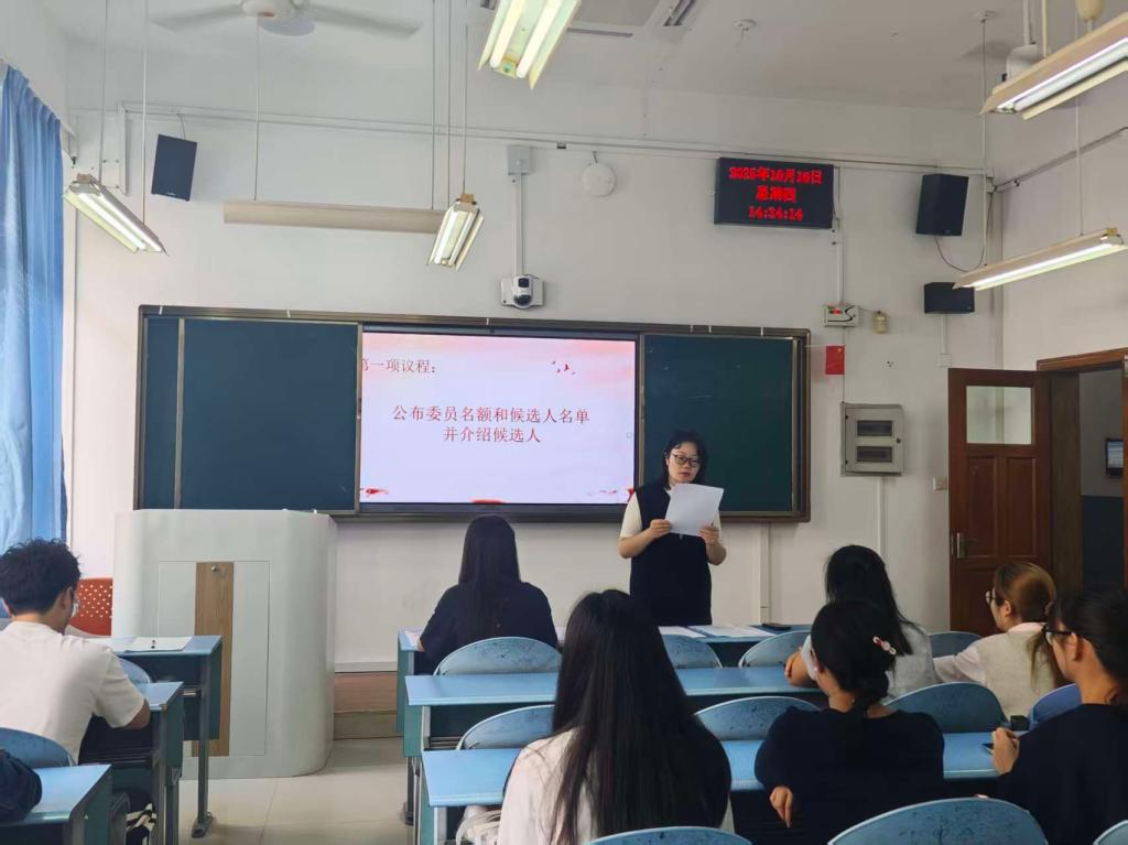 大会最终选举代悦、邓静雯、陈碧、许桂灵4名同志为新一届支部委员会委员。大会后,新当选的支部委员在弘德楼11203教室召开2138cn太阳集团古天乐研究生二支部委员会第一次全体会议,经过投票选举了代悦同志为书记,讨论并确定邓静雯同志为副书记,陈碧同志为组织委员,许桂灵同志为宣传委员,圆满完成支委会选举分工任务。