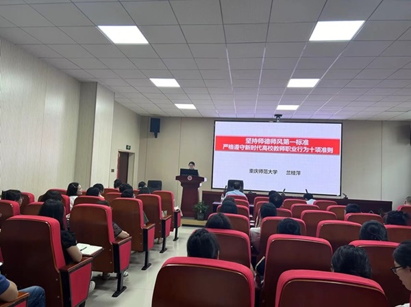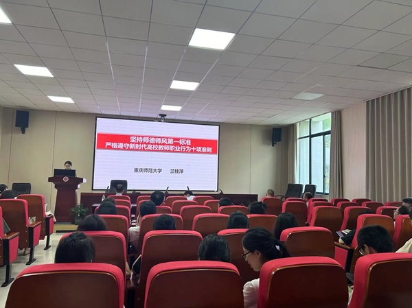 学习会上,我院全国优秀教师、校师德标兵兰桂萍教授进行了师德师风建设专题讲授。兰老师的专题讲授以《坚持师德师风第一标准 严格遵守新时代高校教师职业行为十项准则》为主题,以新时代高校教师职业行为十项准则为切入点,围绕坚定政治方向、自觉爱国守法、潜心教书育人等十个方面展开讲述,她强调了高校教师知准则、守底线,认真贯彻落实以德立身、以德立教的重要性,同时结合教育部曝光的师德失范典型案例,警示高校教师,特别是思政课教师红线不可碰,禁令不可违。最后,兰老师向全体教师强调作为师者的使命:走上三尺讲台,教书育人;走下三尺讲台,为人师表。