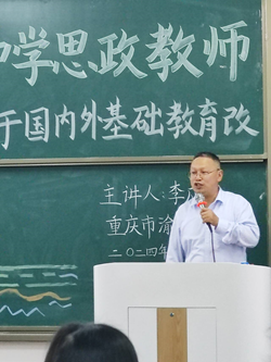 为提高师范生学科核心素养,加强学生教案写作与创新能力,提高学生师范生技能。我院思想政治教育系组织“中学思政教师教育教学素质培养”系列讲座,聘请基础教育专家走进大学课堂,为师范生素质能力的培养加油助力。2024年11月13日,我院特邀重庆市渝西中学李应友老师于砺志楼T2213开展“基于国内外基础教育改革进展的教学设计创新研究”讲座。本次讲座由学院郑瑜老师主持,学院2022级思想政治教育本科和2023级学科教学(思政)研究生共计309位学生参加讲座。