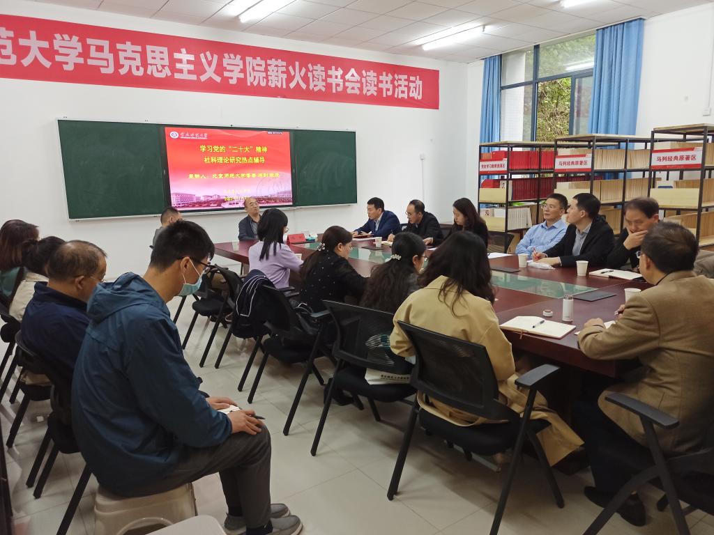 2022年11月3日下午4:30,为深入学习党的二十大精神,进一步深化对党的二十大精神的理解,促进党的二十大精神理论热点研究,北京师范大学博士生导师冯刚教授受邀到我院开展了题为“学习党的二十大精神 社科理论研究热点辅导”的主题分享会。本次分享会在汇贤楼107会议室召开,我院党政班子、系部教研室主任和行政人员参加。活动由副院长姜土生教授主持。