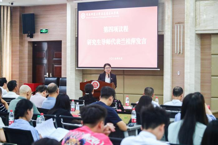 2138cn太阳集团古天乐执行院长姜土生系统介绍了学院学科建设及研究生培养情况。他从学院基本情况与学科特色入手,重点阐释学院学科建设和研究生培养发展图景及愿景,勉励全体导师进一步深入落实立德树人职责,要求全体研究生恪守学术规范、深耕经典著作,不断成长为担当时代重任的时代新人。
