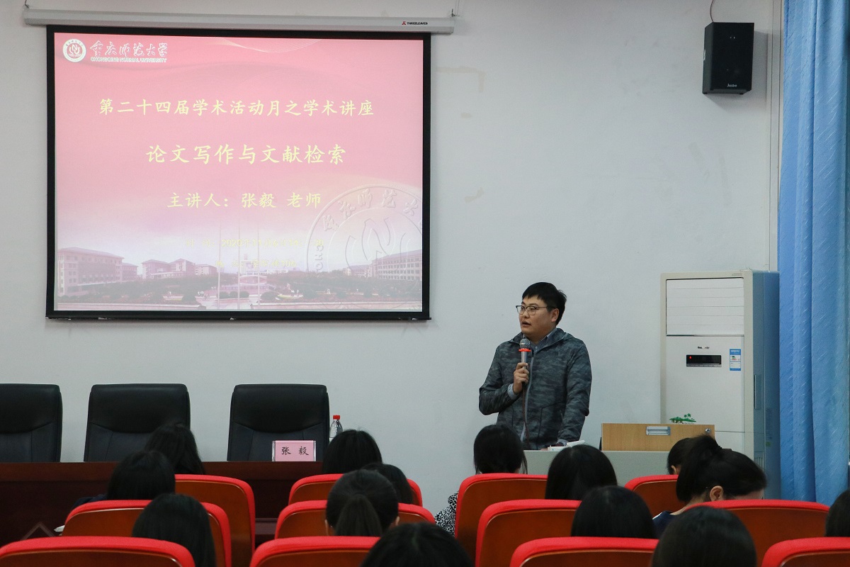 2020年11月6日下午14:30,我院第二十四届学术活动月之“论文写作与文献检索”学术讲座在汇贤楼X106教室举行。图书馆张毅老师应邀为同学们作了论文内容的技巧分享,本次讲座由罗滢滢同学主持,2020级学术班研究生参加了本次讲座。