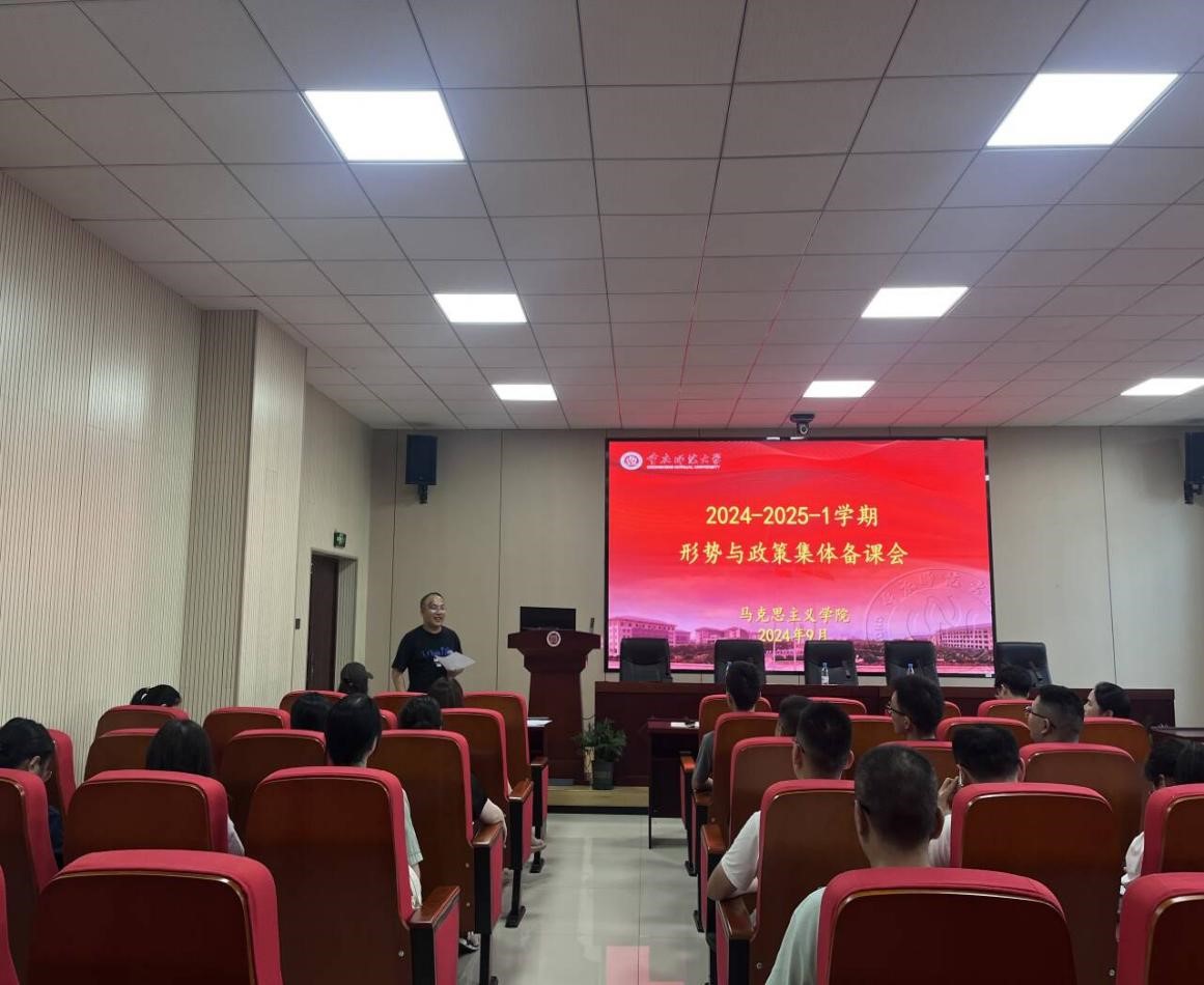 9月19日下午,我院2024-2025学年第一学期形势与政策集体备课会于汇贤楼106会议室召开。学院院长姜土生教授、田方林教授、教研室负责人赵玉民教授、授课教师及学院教科办工作人员出席会议。
