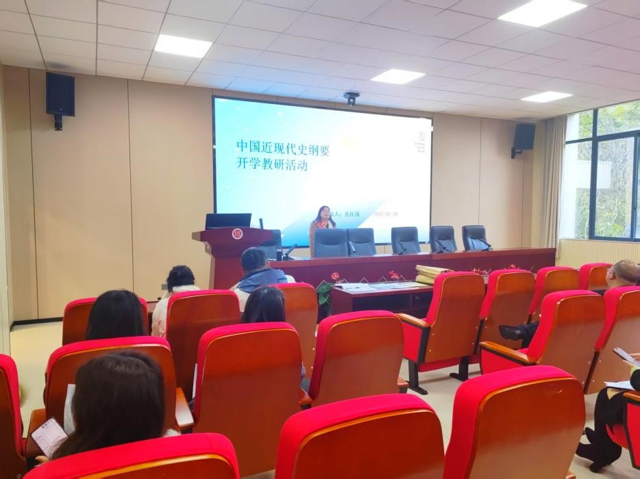 2025年2月20日中午,国家级线上线下混合式一流课程《中国近现代史纲要》(简称“纲要”)教研室在学院106会议室举行新学期首次教研活动。本次活动由教研室主任孔庆茵教授主持,课程组全体教师共同参与。在生成式人工智能全面介入教育领域的当下,传统教学模式面临挑战,为更好地满足学生需求,提升课程教学质量,教师们围绕新学期教学工作部署展开深度交流与探讨,为《纲要》课程教学质量提升明确方向。