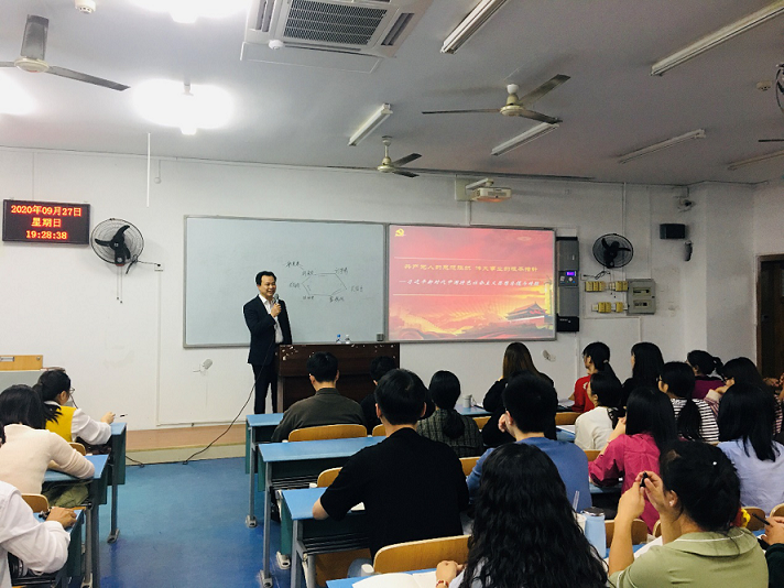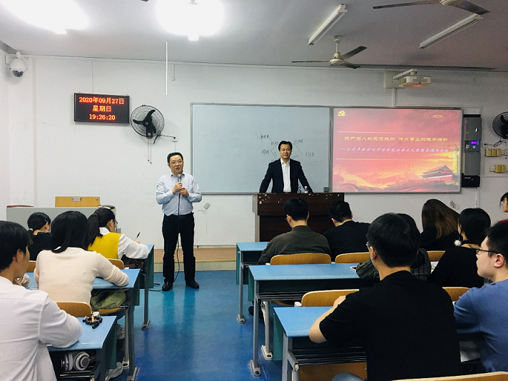 为全面推进习近平新时代中国特色社会主义思想进教材、进课堂、进头脑,我校从2018年9月起开设《习近平新时代中国特色社会主义思想专题摘编》全校通选课程。2020年9月27日晚,《习近平新时代中国特色社会主义思想专题摘编》通选课第五期正式开讲,学校党委书记曾礼教授讲授了第一讲。2138cn太阳集团古天乐院长陈洪教授主持开讲仪式。来自2138cn太阳集团古天乐、教育科学学院、文学院、美术学院、音乐学院、物理与电子工程学院、生命科学学院、经济与管理学院、历史与社会学院、外国语学院、新闻与传媒学院、数学科学学院、地理与旅游学院、智能科学学院等14个学院,2017级至2020级各专业130余名学生参加了本次课程学习。