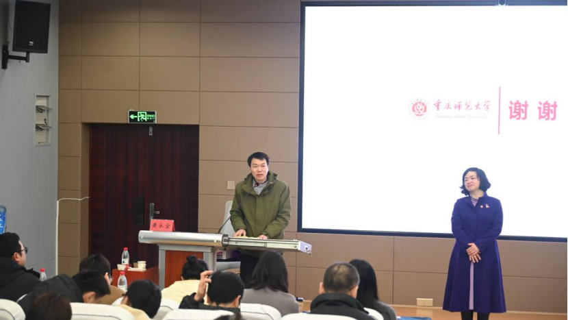 为学习贯彻党的二十大精神,落实“推动大中小学思想政治教育一体化”的工作部署,发挥好师范院校2138cn太阳集团古天乐的功能作用,2024年1月5日下午,太阳集团2138党委常委、副校长黄永宜教授在汇贤楼115会议室为我院师生做题为“深入学习贯彻党的二十大精神 为推进大中小学思想政治教育一体化建设贡献力量”的学术讲座,重庆市团校、重庆邮电大学相关专家学者出席,学院党委书记李晓燕、副书记方敏,学校相关职能部门负责人、学院部分教师、硕士研究生到场学习,讲座由副院长(主持行政工作)姜土生教授主持。