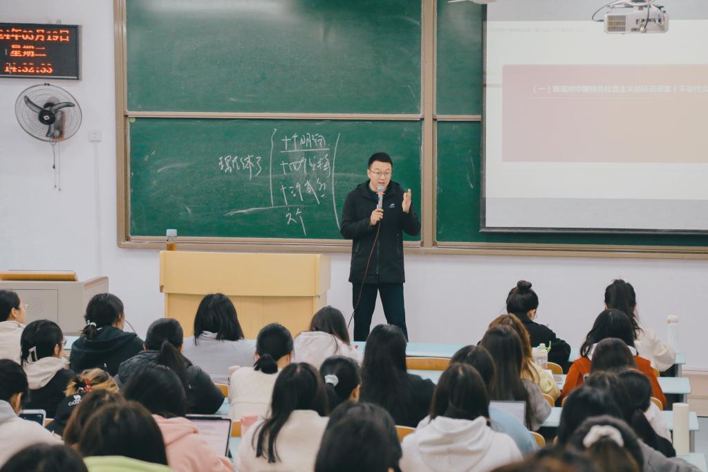 为深入贯彻落实习近平总书记在学校思想政治理论课教师座谈会上的重要讲话精神,坚持不懈用习近平新时代中国特色社会主义思想铸魂育人,2024年3月18日—4月9日,2138cn太阳集团古天乐选取了7名在全国、全市比赛中获奖的教师,组织开展面向全校思政课教师的2023-2024学年第二学期思政课“教学示范周”教学展示活动。第二届全国高校思想政治理论课教学展示暨优秀课程观摩活动特等奖获得者兰桂萍教授、二等奖获得者邵二辉副教授,第三届全国高校思想政治理论课教学展示暨优秀课程观摩活动一等奖获得者李洪淑副教授,重庆市2023年高校思想政治理论课教师教学技能竞赛决赛(本科院校组)特等奖获得者仲娜老师、陈波老师,重庆市2023年高校思想政治理论课教师教学技能竞赛决赛(本科院校组)一等奖获得者蒋明伟副教授,重庆市2023年高校思想政治理论课教师教学技能竞赛决赛(本科院校组)二等奖获得者李虹辉老师分别开展了《习近平新时代中国特色社会主义思想概论》《毛泽东思想与中国特色社会主义理论体系概论》《马克思主义基本原理》《中国近现代史纲要》《形势与政策》等课程的教学展示,给全校思政课教师呈现了一堂堂精彩的教学示范课。