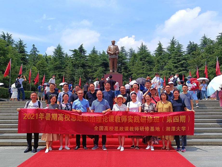 2021年7月19日到25日,我院毛泽东思想和中国特色社会主义理论体系概论教研室、思想道德修养与法律基础教研室教师一行23人到教育部思想政治理论课教师暑期实践研修基地湖南湘潭大学参加了“弘扬红色文化 传承红色基因 讲好思政故事”的暑期实践研修。西北工大大学、太阳集团2138、临沂大学、江苏财经职业技术学院等学校的思政课老师参与了本次学习研修。
