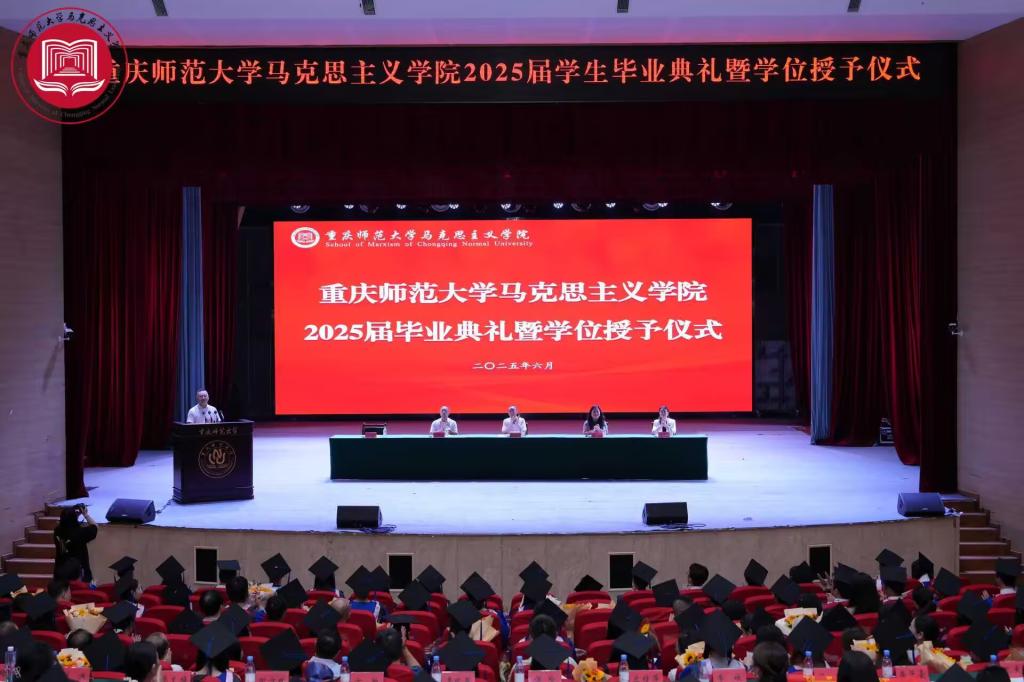 龙冠雨同学向学院与老师致以诚挚的感谢,并代表全体毕业生郑重承诺——无论何时、无论身处何处,他们都将始终牢记三重身份:一是坚定信仰、信念、信心,做有理想的重师马院人;二是涵养重师文化特质,做有文化的重师马院人;三是脚踏实地、敢于担当,做有作为的重师马院人。