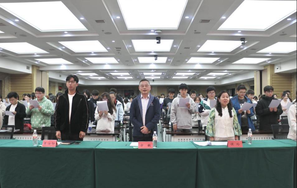 最后,方敏副书记总结发言。他向25级新生表示诚挚的欢迎以及对报告团成员与提名成员表示热烈的祝贺。他对全体学生提出了三点期望与要求:一是用信念坚定理想,做有“心”青年;二是用汗水浇灌青春,做有“为”青年;三是用担当书写未来,做有“志”青年。希望马院学子坚守忠诚初心,勇于担当,秉承实干精神,行稳致远。
