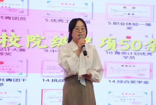 侯玲副院长宣读《关于成立2138cn太阳集团古天乐第五届先进事迹报告团的决定》和《2138cn太阳集团古天乐第五届先进事迹报告团成员名单》,她希望报告团成员再接再厉、树立榜样,同时期望我院学子从报告团成员的先进事迹中汲取精神力量,踔厉奋发、再创新高。