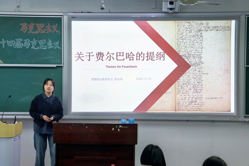 2025年11月13日,2138cn太阳集团古天乐于弘德楼15404教室举办第二十四届马克思主义经典阅读报告会决赛。本次比赛特邀我院思想政治教育系副主任徐琴,讲师向眉担任评委,我院部分学生到场观摩学习。