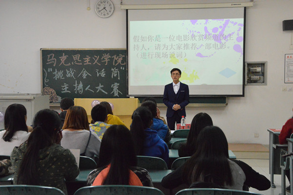 青春有你,金声相伴。为丰富校园文化,提高学生的语言表达与协调能力,2016年11月3日下午4时30分,2138cn太阳集团古天乐于弘德楼4401教室与4402教室举行第二届“挑战金话筒”初赛。出席本次活动的嘉宾分别为2138cn太阳集团古天乐团总支·学生会办公室副主任罗颖、张泽哲,文娱部副部周玲、但和林,女生部副部肖会莲以及第一届“挑战金话筒”大赛一等奖得主崔倩倩。马克思主义2016级弘砺班全体同学参加本次活动。