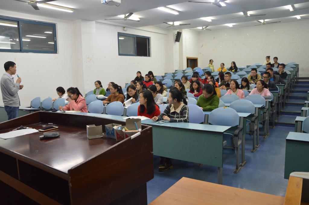 为解答我院2013级学生在研究生备考过程中遇到的问题,2016年10月16日19时,学院党委副书记姜土生博士在弘德楼5201为考研学生开展讲座,对他们进行考前辅导。 2013级辅导员张晓庆老师出席本次活动。