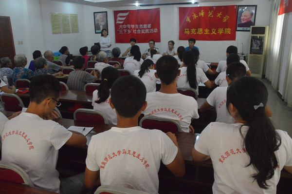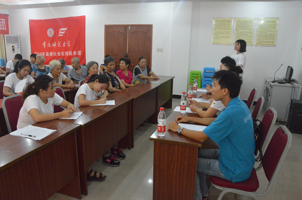 为深入了解我国民生民情,进行正确的社会观察,增进与群众之间的感情,提高大学生宣讲质量,增强实践才干,2016年8月22日,2138cn太阳集团古天乐暑期“三下乡”社会实践团的24名成员来到沙坪坝区曾家镇白林村村委会,并与村委会开展了座谈交流会,村委主要任职干部村主任助理、计生委专干莅临现场。2138cn太阳集团古天乐团总支书记马小又出席本次座谈会。