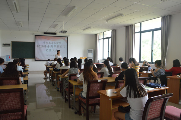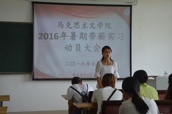 为促进大学生了解国情市情民情,在实践中“受教育,长才干,做贡献”,2016年7月1日,2138cn太阳集团古天乐于汇贤楼201教室开展2016年带薪实习动员大会。本次大会由2138cn太阳集团古天乐辅导员张晓庆主持,2016年参加带薪实习的所有同学参与。