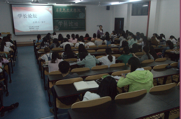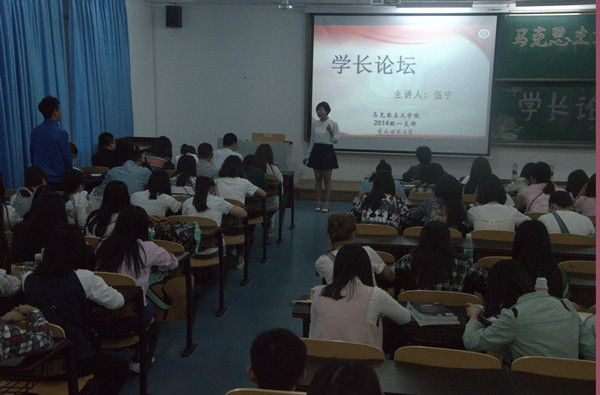 活动分两个场地进行,在特教楼的2410教室,2014级一班的同学们全神贯注地听着伍宁的讲解。她简洁地说明了自身发展情况并向同学们提供了三点建议。其一、大学生在面临考研还是就业的选择时,应该要结合自身实际情况;其二、思想政治教育专业的学生主要以从事教育工作为主,作为一个教师首先应培养一个好的学习习惯,要注重培养自己的教姿教态及语言表达能力;其三、多参加讲课比赛等与专业技能息息相关的活动。当同学们提出应该如何提升自我的讲课水平的问题时,她说道:“大学生应在日常生活中关注新闻,积累时政。并与我们的专业知识相结合,力求将课堂打造成有理论有依据有思想的“三有”课堂,让课堂有亮点。讲课的PPT应以简为美,坚持三秒能让人看懂的原则。最后要注重培养自己的教姿教态及语言表达能力,练好普通话。”