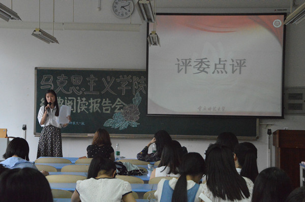 为深化我院学子的马克思主义理论知识,促进其内涵发展,培养其多看书、多思考、多动笔的学习习惯,并进一步推进学院导师制建设,2138cn太阳集团古天乐于2016年5月12日14:30在弘德楼4206、4207教室举办了马列经典阅读报告会初赛。出席本次活动的评委分别是2138cn太阳集团古天乐研究生朱柳松、王瑜、闫明月、郭建、胡灿、戴静、侯博瑞。2014级和2015级部分学生到场观摩学习。