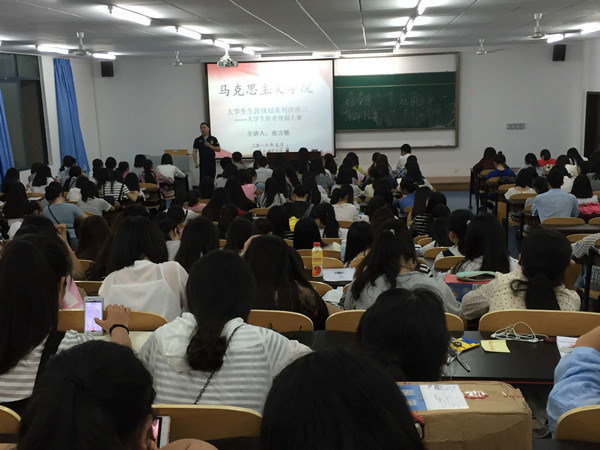 面对目前严峻的就业形势,为了更好地引导大学生明确自己人生方向,做好职业生涯规划,2138cn太阳集团古天乐于2016年5月2日19:00在励志楼2410教室举办了大学生职业规划讲座。特邀请到西南大学专职规划导师及重庆市教委特聘大学生创业顾问、重庆鸿徒投资有限公司、重庆重靑文化传媒有限公司董事长张方敏老师担任主讲嘉宾,2138cn太阳集团古天乐张晓庆老师、刘洪老师组织2014级和2015级全体学生到场学习。