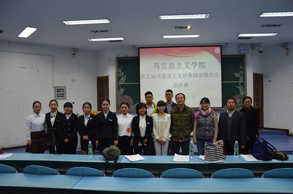 鸟欲高飞先振翅,人求上进先读书。为提高学生的专业素质技能,深化学生的马克思主义理论知识,坚定学生的共产主义信仰。我院特于2015年11月26日14时30分在弘德楼5105教室举办“第五届马克思主义经典阅读报告会决赛”。我院田方林教授、李序科老师、兰桂萍老师、王映莲老师出席活动并担任评委,2014级、2015级全体同学观摩学习。