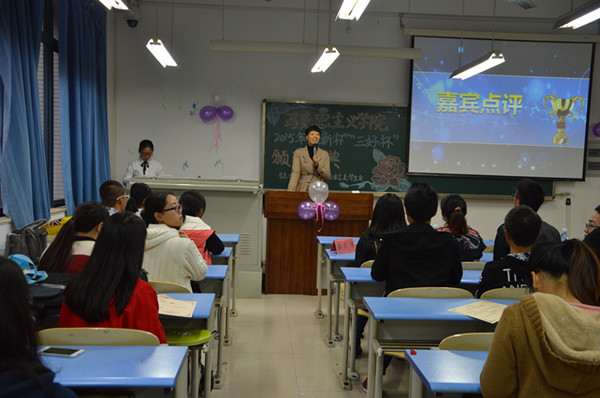 体育部部长陆伟对本次赛事作总结。他肯定了同学们的积极性,也对比赛过程中的秩序混乱、服装不一的不足之处提出了改进措施,并鼓励大家积极投身于运动之中。随后,他公布了本次“迎新杯”篮球赛获奖名单,团总支书记马小又为获奖代表与“三好杯”足球赛队员颁奖。