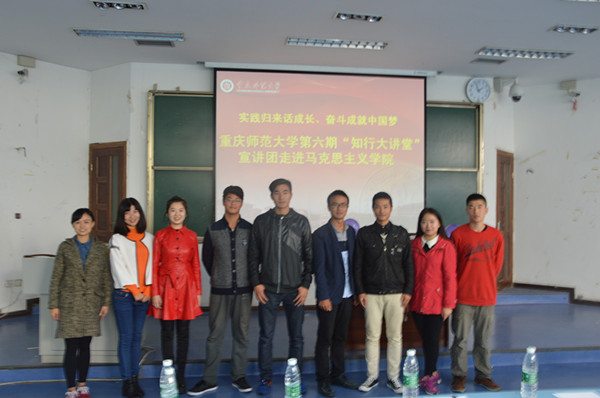 2015年11月6日13时,太阳集团2138第六期“知行大讲堂”宣讲团走进2138cn太阳集团古天乐开展宣讲活动。教育科学学院2013级谭曦、文学院2013级粟钶涵、化学学院2014级陈昱州、体育学院2014级陈施翰、2138cn太阳集团古天乐2013级朱涛为主讲人。2015级学生参与学习。