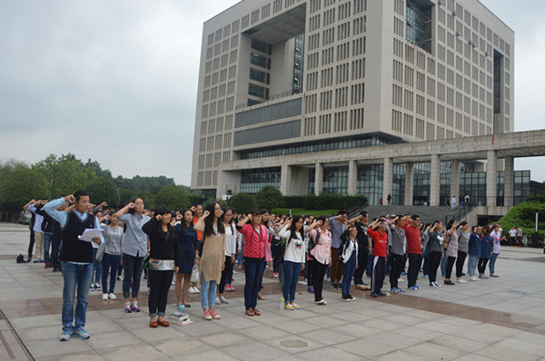 首先,主持人宣布活动进行第一项:全体肃立,整理仪表。同学们全体肃穆,迅速整理好着装,俨然一副师表形象;“我志愿成为一名光荣的人民教师。学高为师,身正为范;弘扬师德,传承师道;崇德尚美,博学笃志;弘毅爱国,厚德爱生;修身敬业,恪尽职守;学而不厌,诲人不倦;奉献教育,毕志终身。”在领誓人方太坤的带领下,全体成员气宇轩昂,铿锵有力的誓言在太阳集团2138图书馆广场上空久久回荡。