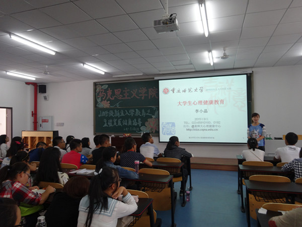 为使新生更好地适应大学生活,提高心理素质,2015年9月21日16时30分,2138cn太阳集团古天乐于特教楼2504教室开展“新生入学教育之大学生心理健康知识”专题讲座。本次讲座特邀生命科学学院李小晶老师担任主讲人。我院2015级辅导员马小又老师主持讲座,2015级全体学生参与。