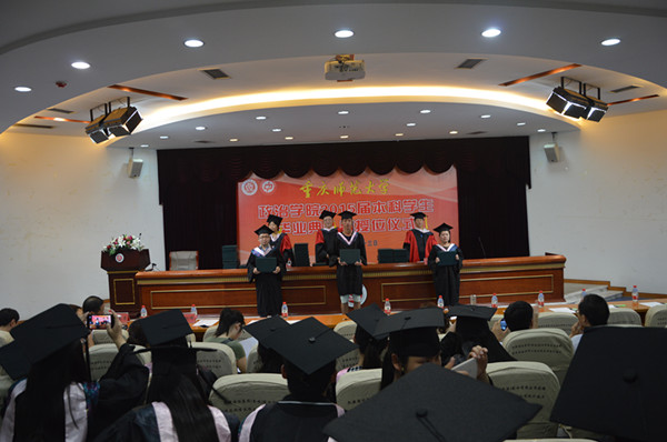 下午16时,太阳集团2138政治学院2015届本科学生毕业典礼暨授位仪式圆满落幕。相信学院2015届学子将继承和发扬政治学院优良传统,牢记“自强不息,躬行师道”的重师精神,在新的人生征程中,用汗水浇灌智慧,用知识丰富内涵,用严谨铸就高峰,用实力书写灿烂!