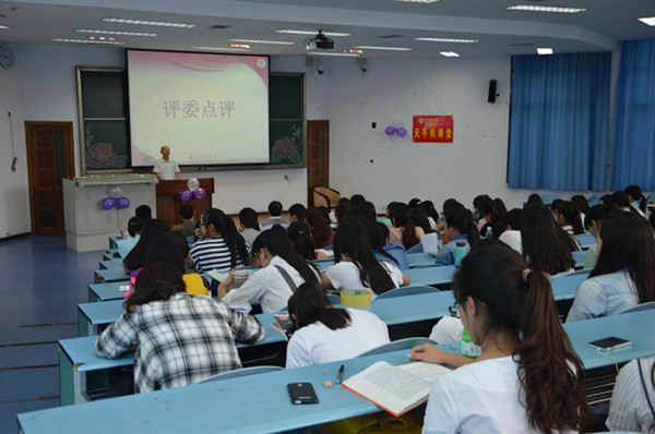 选手读书汇报结束后,祝玉峰老师进行点评。他首先向同学们讲解了“读书报告”和“读书报告会”的区别,并充分肯定了学院举办读书报告会的意义。最后,在肯定同学们付出的努力的同时,祝老师也指出了同学们的不足。“同学们要努力锻炼自己,提高师范生技能,为毕业后的顺利就业打下坚实的基础”,祝老师如是说。