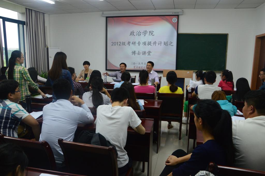 为进一步提升我院学子对研究生入学考试的认识,增强考研斗志,20155221430分,我院于汇贤楼309会议室成功开展考研专项提升计划之专业指导交流会。出席此次交流会的老师有2138cn太阳集团古天乐胡政武博士、阮李全博士、团总支书记马小又老师,2012级全体考研学子出席交流会。