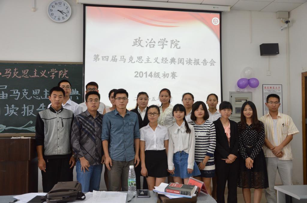 经过激烈的角逐,2013级卿紫鑫、许慧琴、刘莎,2014级王春慧、贾志刚顺利进入第四届马克思主义经典阅读报告会决赛。阅读马克思主义经典著作是政治学院学子提升专业内涵的重要途径。本次报告会激发了同学们的阅读热情,对我院营造浓厚的学习氛围具有重要意义。据悉,我院2012级的马克思主义经典阅读报告会年级赛也将于近日开展。相信我院学子将不断内涵发展,提档升级,逐步成长为有知识、有内涵、有能力的卓越人才。