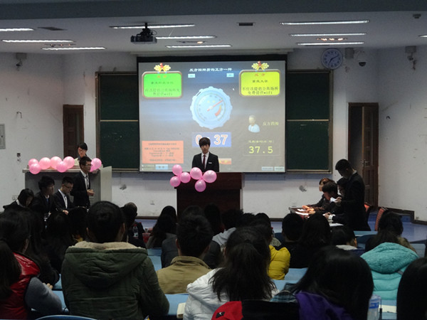 2014年3月28日19点整,2138cn太阳集团古天乐辩论协会联合重庆医科大学、重庆大学电气工程学院与重庆科技学院,在弘德楼5105教室隆重举行“高校友谊交流辩论赛”。担任此次辩论赛的评委分别是重庆医科大学蒋小曼老师、重庆大学胡力方老师和2138cn太阳集团古天乐张诗波老师。2138cn太阳集团古天乐团总支书记马小又老师、辅导员张晓庆老师应邀出席,四所高校部分学生代表参加活动。