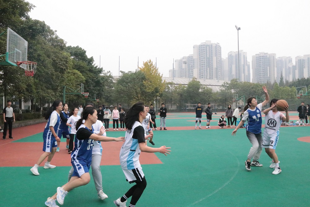 13时,哨声响起,女子组比赛正式开始。我院球员之间配合默契,熟练地运球、传球。其中,九号球员稳定发挥,成功投入两分球,随后五号球员抓住时机,突破防守,急停抛投,成功投入三分球,引来阵阵喝彩。对阵双方积极地拼抢、精准地投篮,上演着球技和体能的精彩较量,现场气氛热烈。