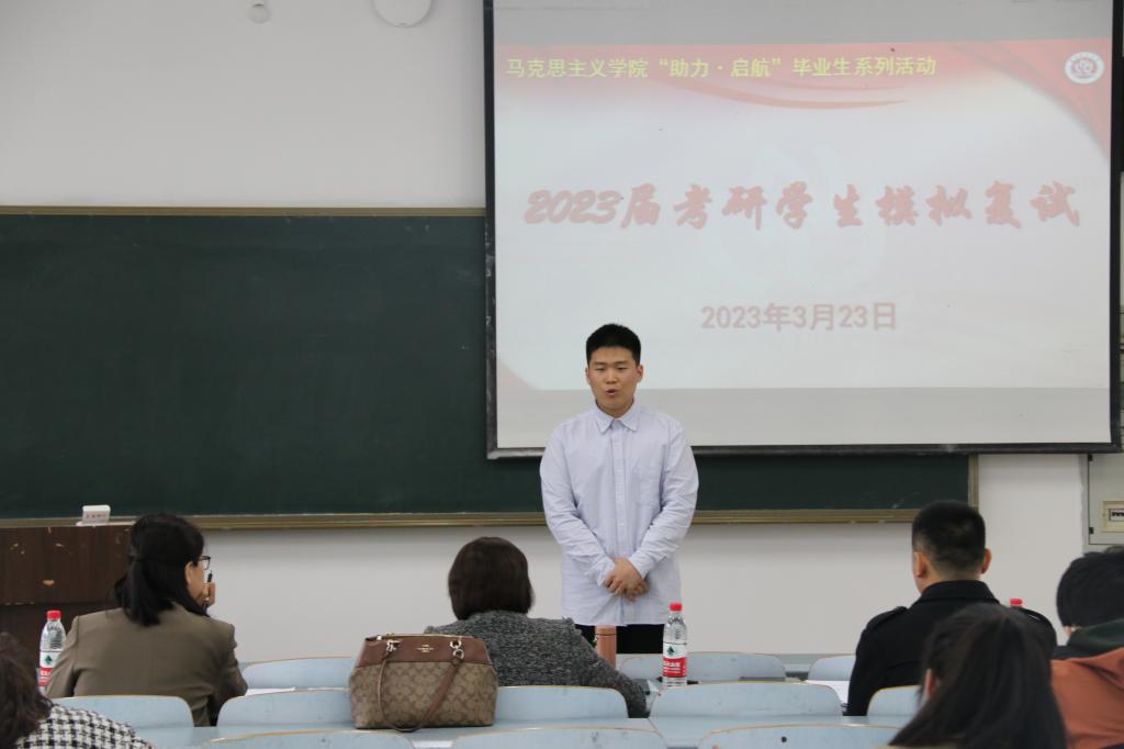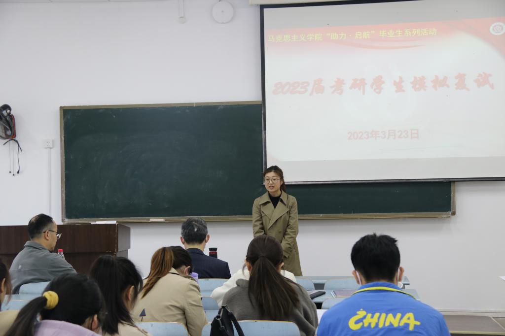 为进一步做好学院2023届考研学生的复试指导,帮助考生熟悉复试流程及面试技巧、提升心理素质和现场应变能力,从而增强复试信心,提高考研录取率。2023年3月23日14时,我院于弘德楼12501、12502等教室开展2023届考研复试模拟面试。此次考研模拟复试特邀学院18位经验丰富的专业学科教师担任模拟面试官,共计56位考研学子参与。