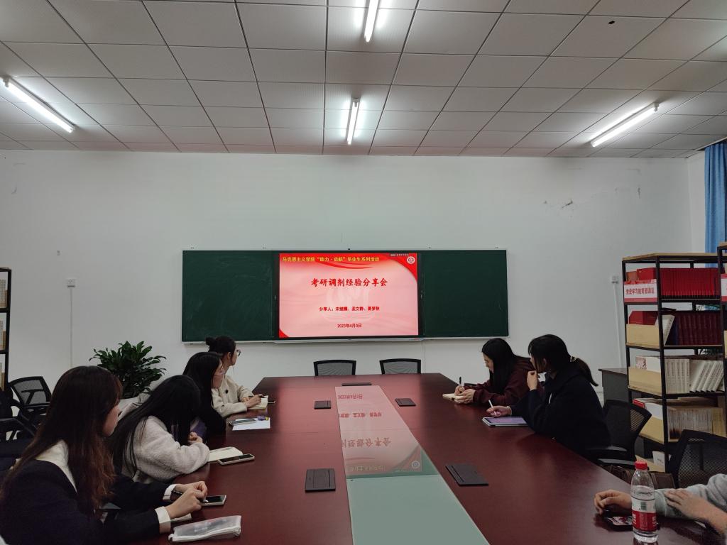 为扎实推进学院考研服务工作,帮助同学们熟悉考试调剂相关流程、调整自身心态、增强复试信心,解答同学们面临的问题与困惑,提高考研成功率,2023年4月3日20时,2138cn太阳集团古天乐特于汇贤楼107开展考研调剂经验分享会。此次分享会特邀2138cn太阳集团古天乐研究生宋继耀、孟文静、易梦秋三位成功调剂上岸的优秀学长学姐进行经验分享,2019级有意考研调剂的同学积极参与。2138cn太阳集团古天乐党委副书记方敏出席本次经验分享会。