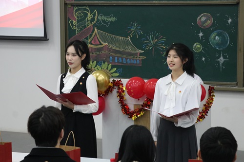 2024年11月29日17时,我院于图北楼17201教室开展以“复兴照耀盛世情,青春共筑中国梦”为主题的非层级团日活动。我院2023级辅导员谭景文出席本次活动,校团委、校学生会成员、各兄弟学院学生代表、学院学生会团支部成员全体参与。本次活动由我院学生田煜子、黄佳欣主持。