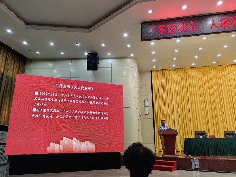 开幕式结束后进入大会发言阶段,由原中国人民大学党委书记、中国延安精神研究会副会长靳诺主持。重庆延安精神研究会会长、我院陈洪教授以“毛泽东‘为人民服务’的三重境界”为题作了主题发言。他以毛泽东在延安时期发表的《为人民服务》、《坚持为人民服务》、《论联合政府》三篇文章为依据,从为人民服务——党员基本要求,到坚持为人民服务——党的基本方针,再到全心全意为人民服务——党的根本宗旨的不断递进,梳理了从为人民服务到坚持为人民服务再到全心全意为人民服务的发展演进,并强调这三重境界始终坚持和发展马克思主义唯物史观,始终坚持群众观点,始终坚持群众路线,彰显了毛泽东和中国共产党人的人民情怀和崇高境界,对于今天始终坚持“人民至上”,树立正确权力观、政绩观、事业观、利益观,保持党同人民群众的血肉联系以及把实现好、维护好、发展好最广大人民群众的根本利益作为深化改革的出发点和落脚点,具有长远的指导意义和很强的现实意义。最后,他以习近平总书记“我们讲宗旨,讲了很多话,但说到底还是为人民服务这句话。我们党就是为人民服务的”进行归纳总结,认为进入新时代以来,以习近平同志为核心的党中央提出人民对美好生活的向往就是我们的奋斗目标、“以人民为中心”的发展思想、坚守人民立场、坚持人民至上理念,将全心全意为人民服务的根本宗旨提升到了党的根本政治立场和治国理政新的高度、新的境界,强调在新时代新征程上,要深学笃用习近平坚持人民至上的重要论述,牢牢把握坚持人民至上的深刻意蕴,在全心全意为人民服务中创造新的更大伟业。