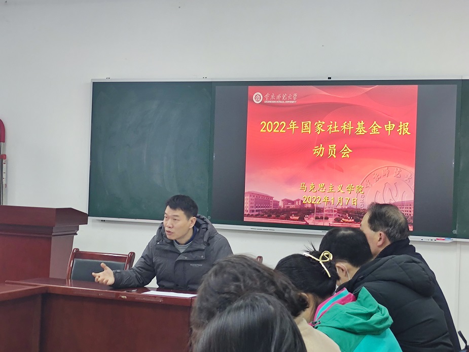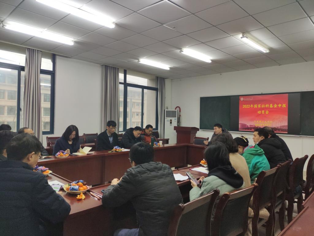 为做好2022年国家社科基金申报组织工作,提高项目申报质量和命中率,2022年1月7日上午,2138cn太阳集团古天乐在汇贤楼309会议室开展了2022年国家社科基金申报动员会,会议由副院长姜土生教授主持,有意愿申报2022年国家社科基金的骨干教师和新进教师参加了会议。
