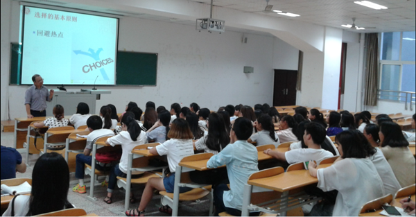 这次招生宣传工作,主要以考研经验交流的形式进行。在招生宣讲会上,刘寿堂老师首先以自己当年的考研经历,以及作为新东方资深考研培训师多年的培训经验,向同学们解答了是否准备考研、为什么考研、考研选择什么学校,以及怎样备考研究生等问题,紧接着着力介绍了2138cn太阳集团古天乐硕士研究生招生专业的设置情况、硕士研究生培养和就业情况、硕士研究生培养师资情况,以及研究生招生和奖励政策等基本情况。刘老师诙谐幽默的讲解方式,得到了同学们的高度认可。